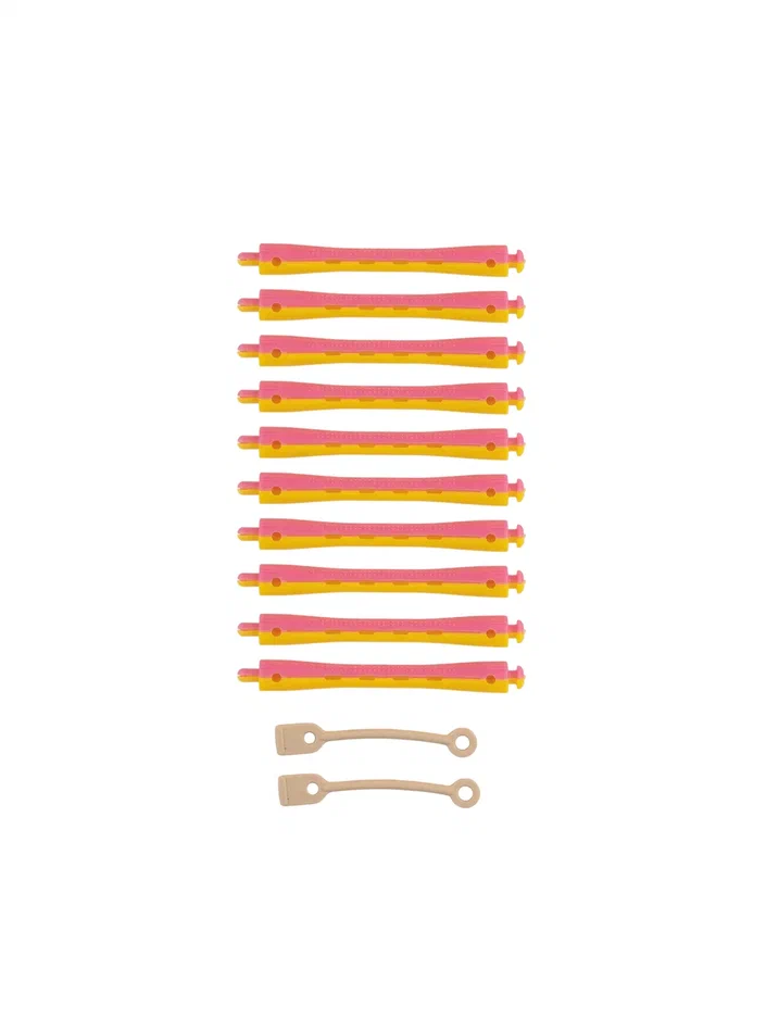 Яркие и позитивные, желто-розовые коклюшки для самых упругих завитков. С ними прическа получится эффектной и будет долго сохранять форму.
