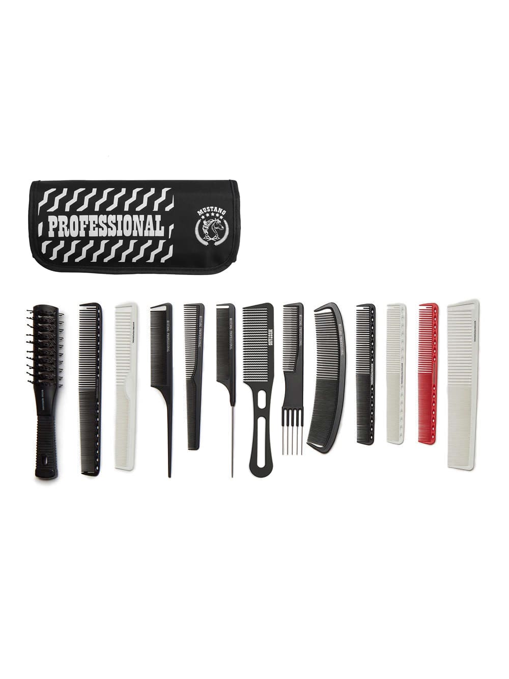 В комплекте профессиональных парикмахерских расчесок Mustang Professional NRPR-01 - 13 самых востребованных при работе расчесок. С ними вам не придется самостоятельно собирать комплект "на все случаи жизни" - но вы и не попадете в ситуацию, когда действовать приходится неподходящей расческой