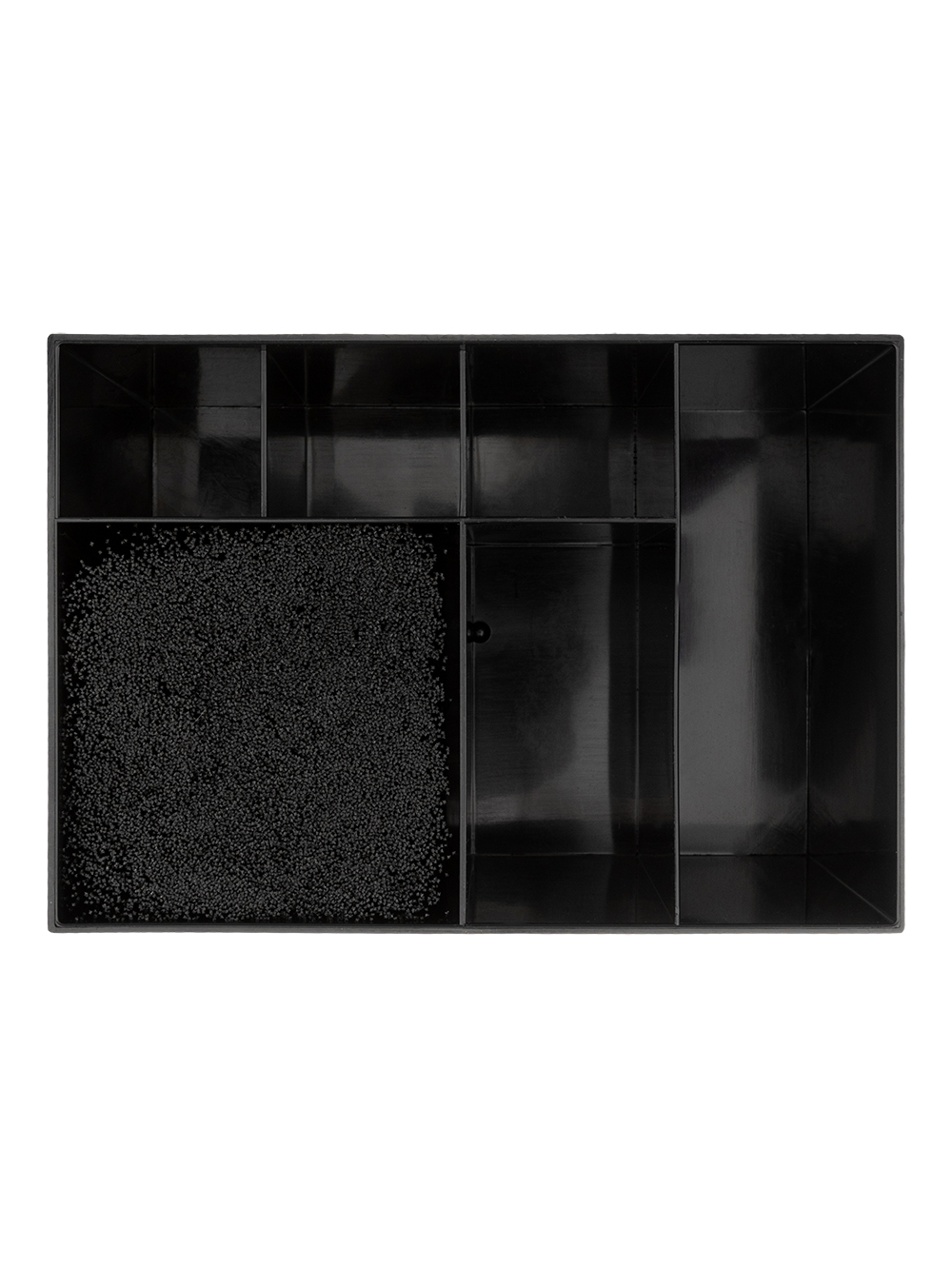 Выполнена из прочного черного пластика. Стильно выглядит, устойчив к повреждениям и загрязнениям.