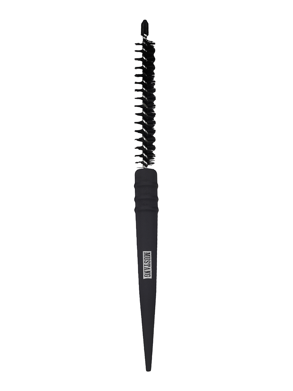 Мягкая и густая нейлоновая щетина мягко фиксируют волосы, не травмируя их структуру. Позволяет точно моделировать каждую деталь причёски. Создана для укладки коротких волос и бороды.
